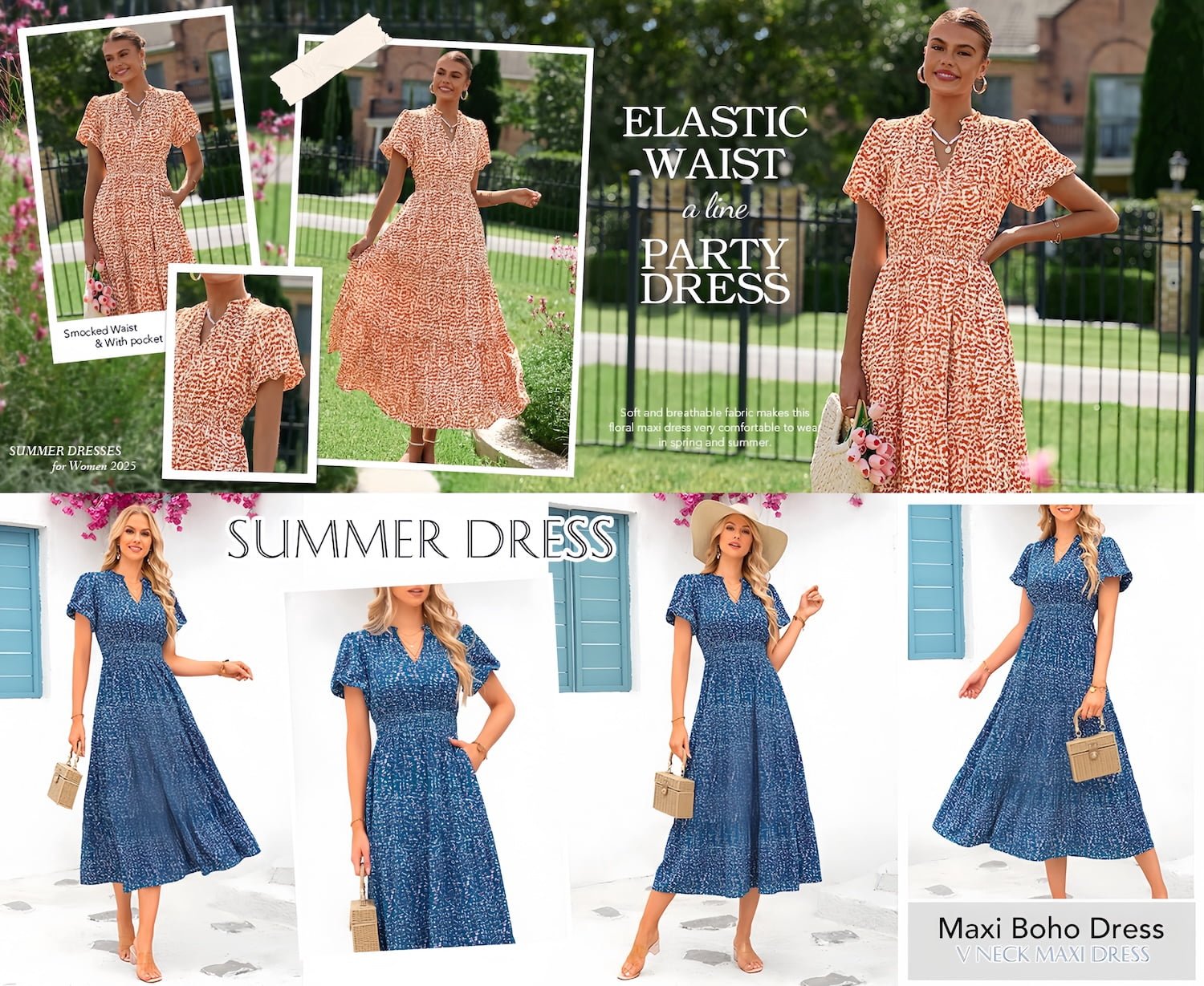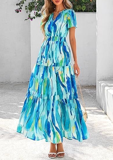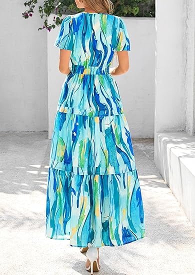 β¨β¨ππππ§π¨π₯ππ¦: Long Dresses for Women; Short Sleeve Dress for Women; V Neck Dress for Women; Boho Dress with Pockets; Elastic Waist Womens Summer Dresses; Tiered Dress Women; Flowy A Line Dresses for Women; Beach Dresses for Women; Vacation Outfits for Women