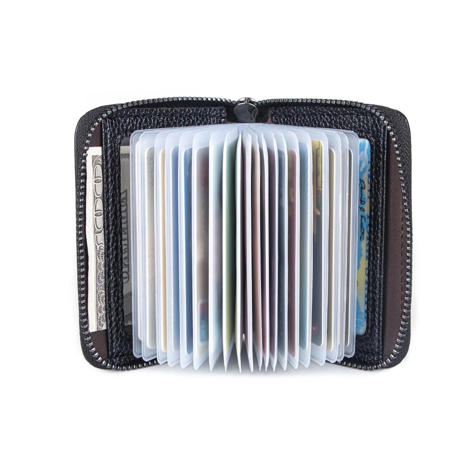 - • Material: Genuine leather and PVC card slots