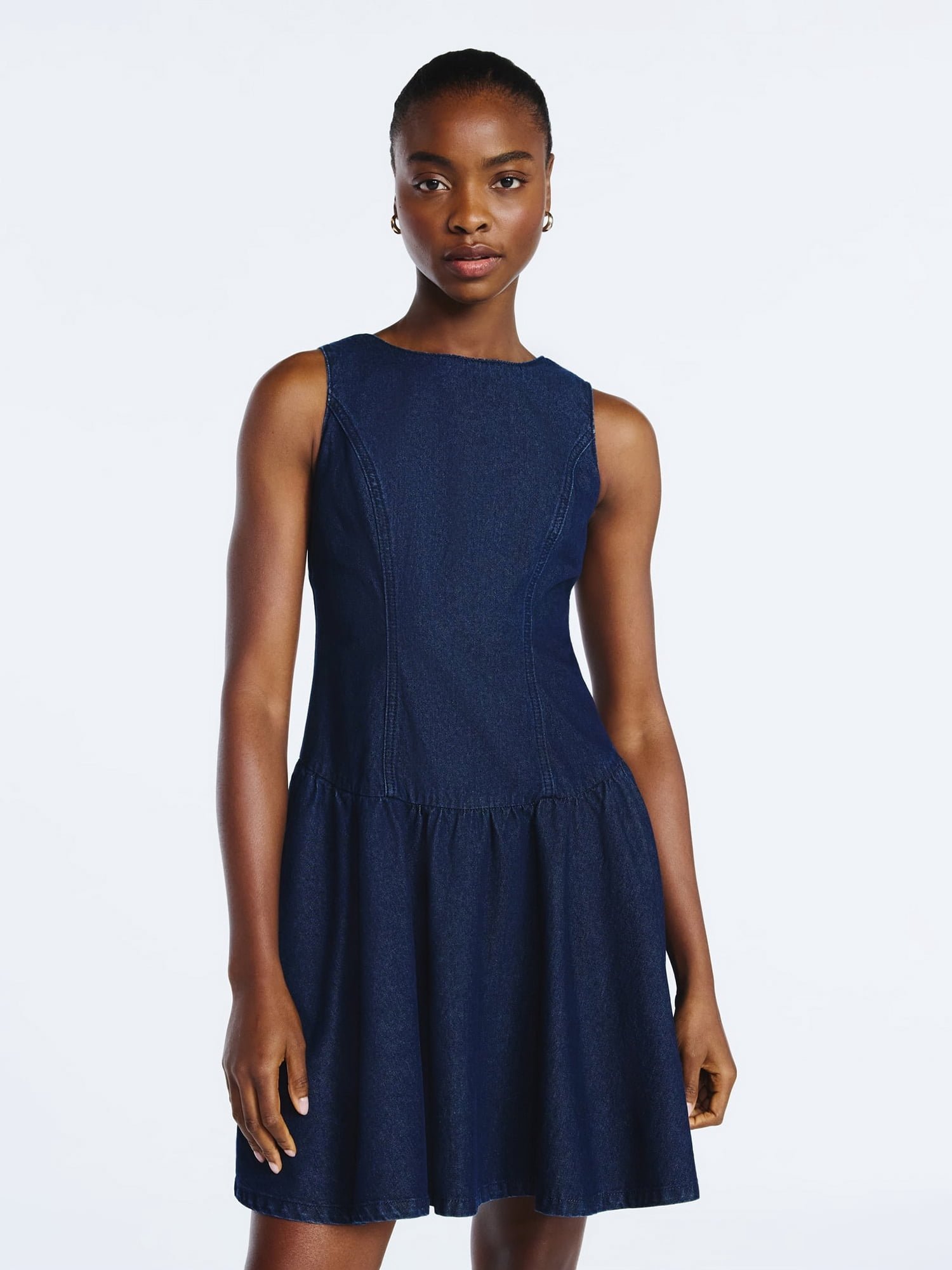 This stylish short dress from Scoop features a flattering boat neckline and a modern dropped waist silhouette that adds a relaxed, fashion-forward touch. Ideal for casual outings or dressed-up daytime looks. Exclusively at Walmart.