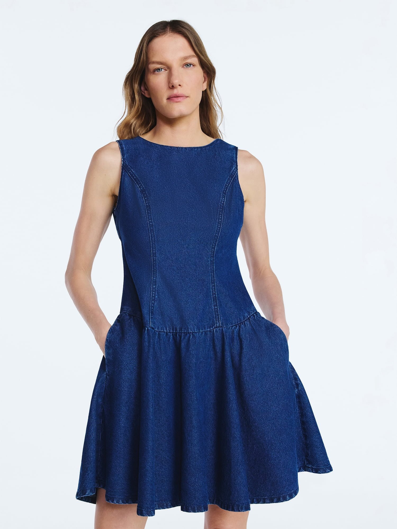 - Cotton Dropped Waist Boat Neck Dress for Women from Scoop