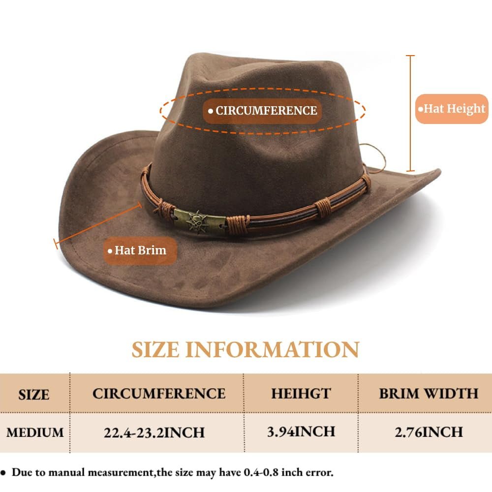 - Material:The cowboy hats for women is made of suede material, which makes the hat feel soft, smooth and light to the touch. .Cowboy hat for women and men, felt cowgirl hat for adults, western party dress up accessories.