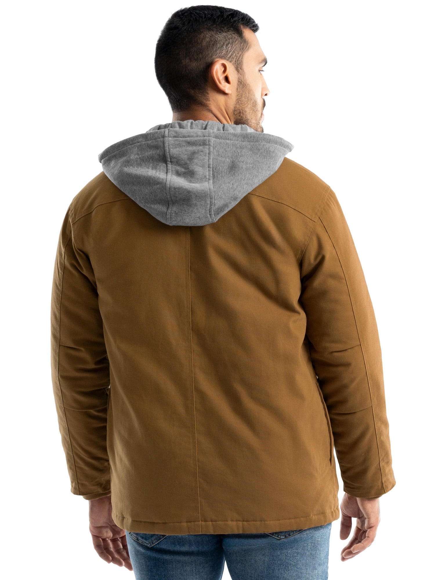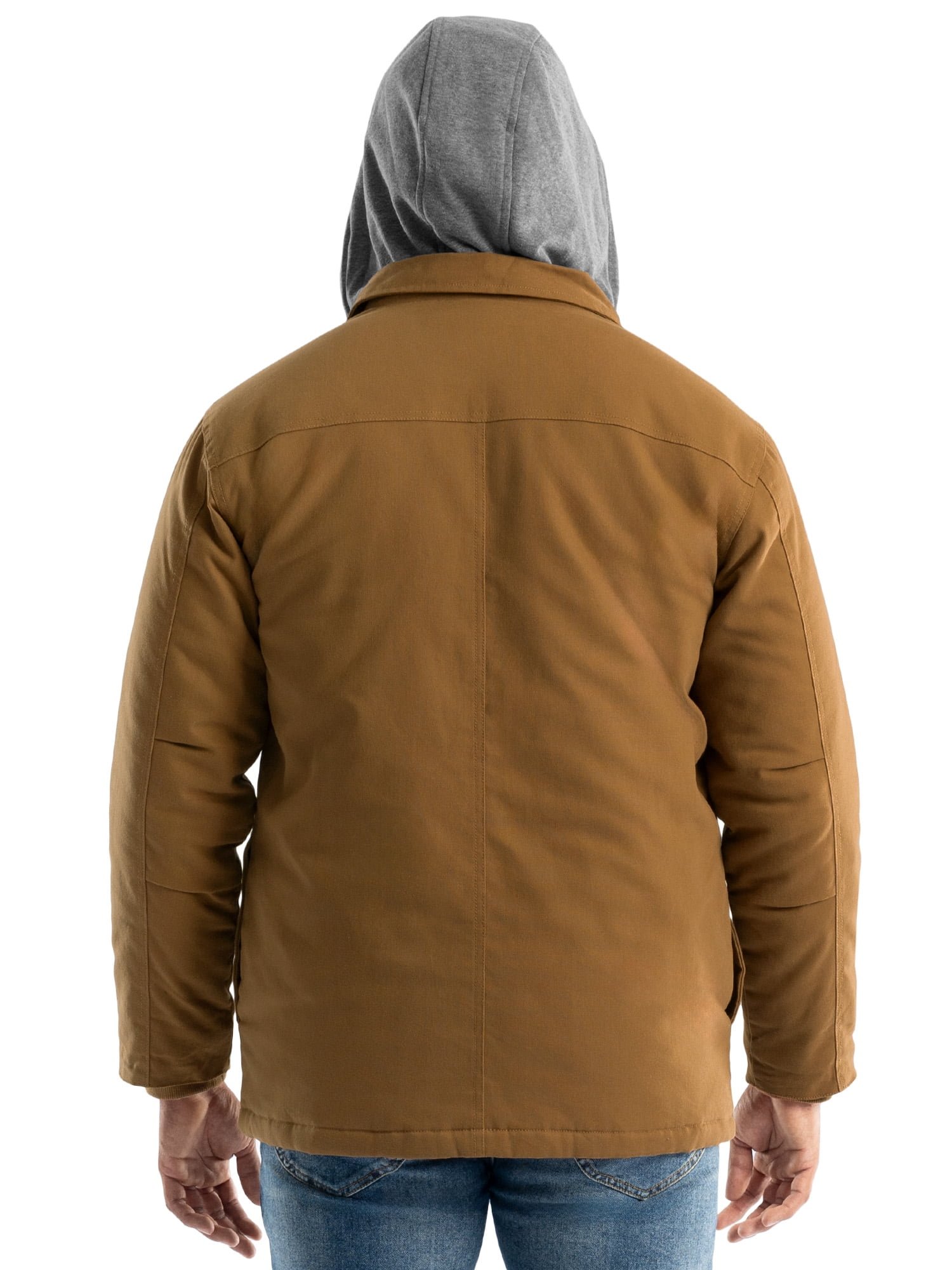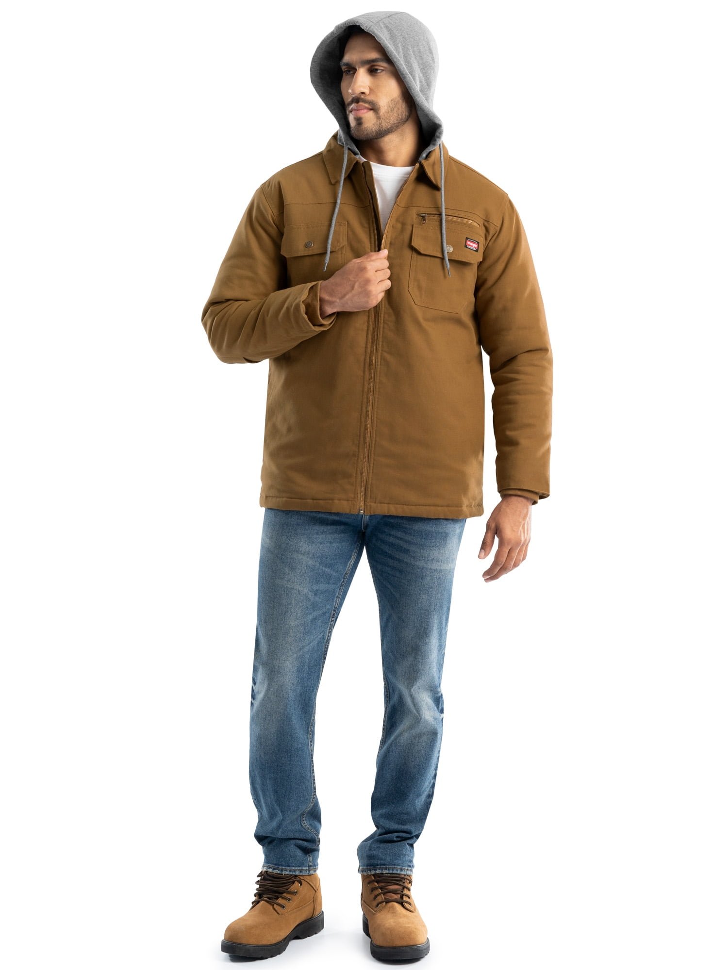 For men who demand their work clothes be as tough as they are, this Wrangler Workwear Men’s Quilted Lined Shirt Jacket is up to the task. Featuring a 100% Cotton Duck Canvas exterior and soft polyester diamond quilt lining, it offers the extra warmth you need on outdoor work days plus the lined hood with built-in drawstrings provide added protection from the elements. Durable duck canvas is flexible for a comfortable fit that allows you to move without restriction. With dual button-flap chest pockets for safekeeping small essentials, and a convenient pen pocket, you’re always prepared. Shirt jacket styling looks excellent whether on the job or around town – indeed a fall wardrobe essential.
